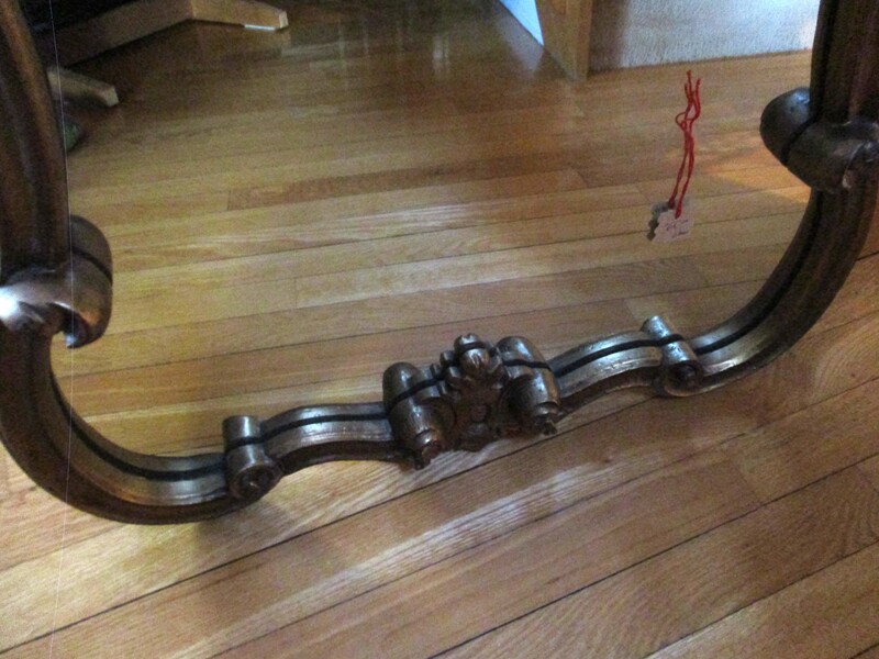 Miroir de style victorien. Sculptures au haut et au bas. 24 X 35 PO DE HAUTEUR