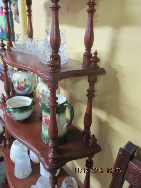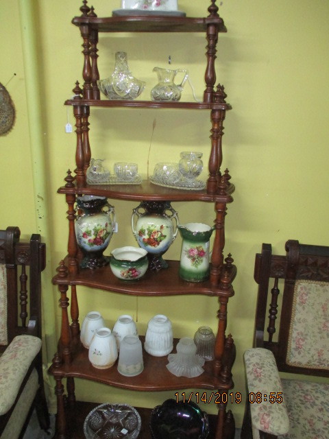 Étagère 6 tablettes en bois avec poteaux en forme de chandelles, vers 1930. Très pratique. 28" X 13" 67" H