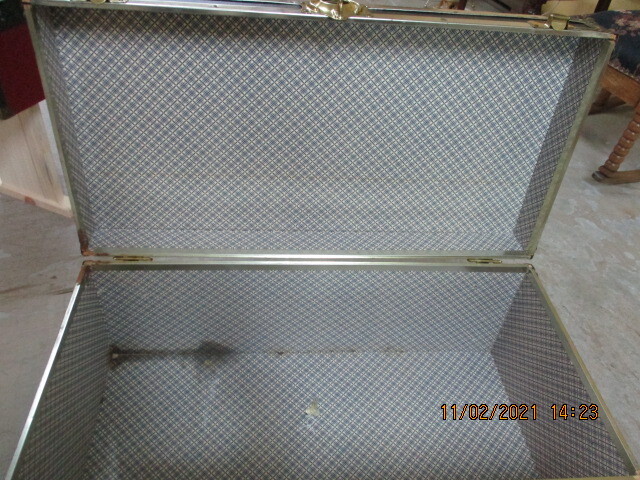 Valise noir avec bordures métalliques. En tres bonne condition. 30"X 15" X 12"H