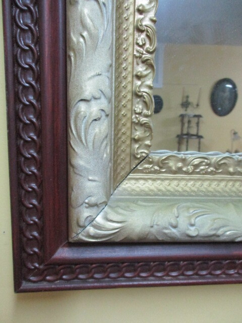 Miroir avec cadre en bois brun et contour en plâtre de paris or. Excellente condition. 25" x 29"h