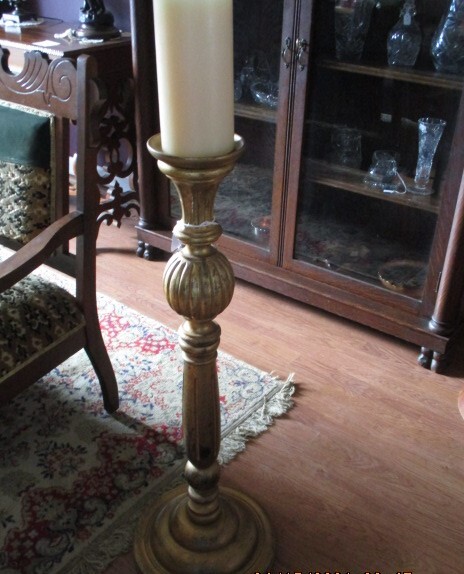 Très beau chandelier d'glise ancien en bois de couleur or. 34"