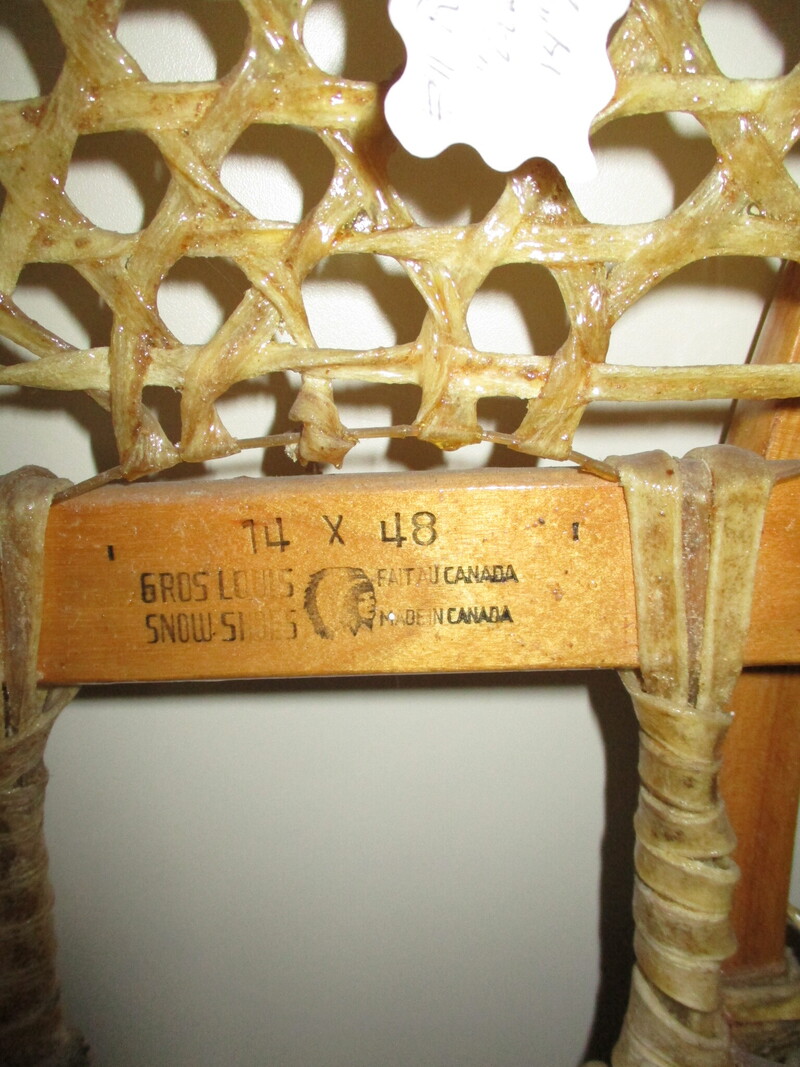 Paire de raquettes fabriquées au Canada par Gros Louis Shoes en parfaite condition 14 X 48 po