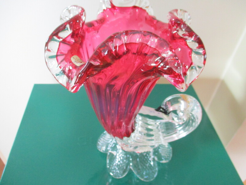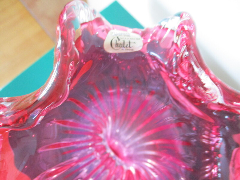 Corne d'abondance verre chalet 8 po canneberge, vintage 1970.