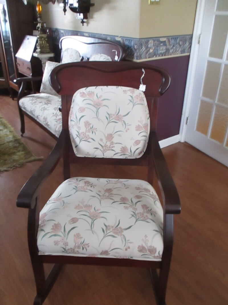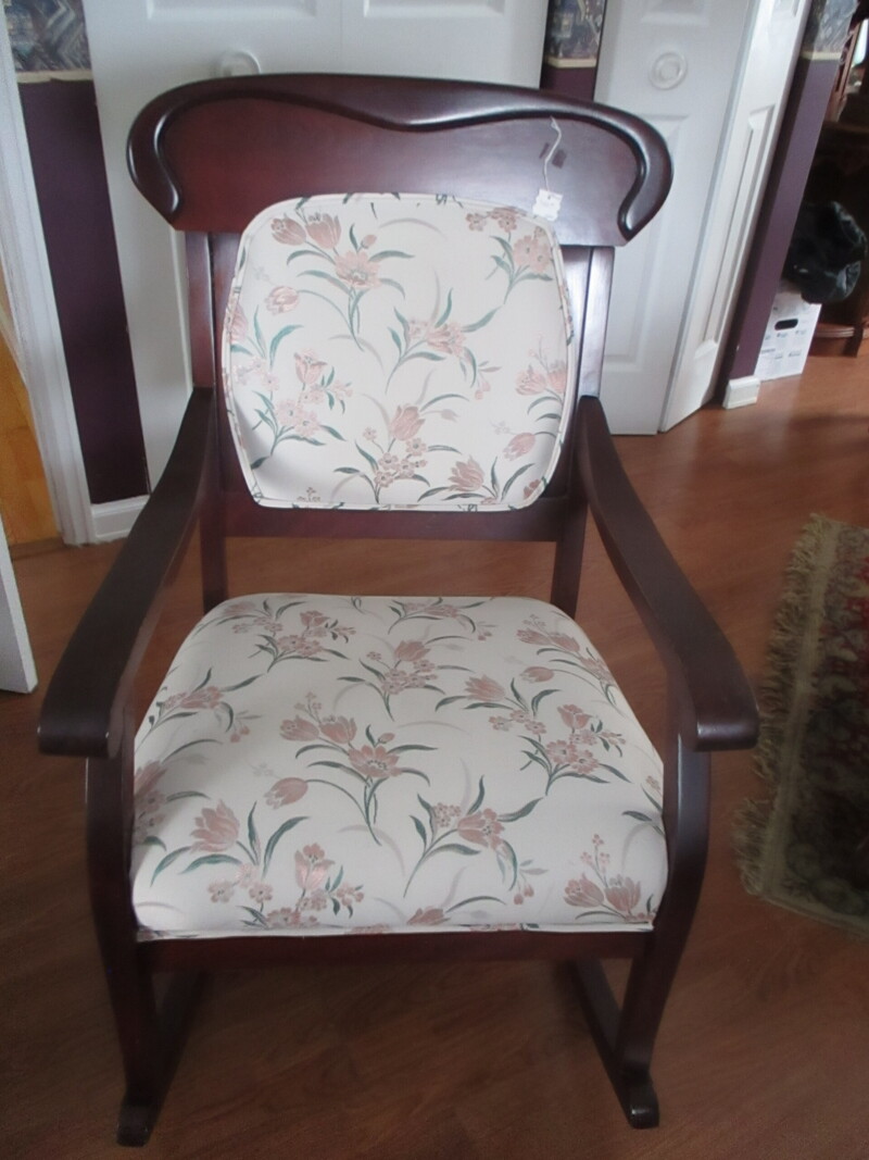 Bercante de style Victorien avec recouvrement beige etnfleurs vieux rose et vertes. 23 po 1/2 de large par 39 po de hauteur