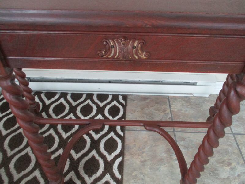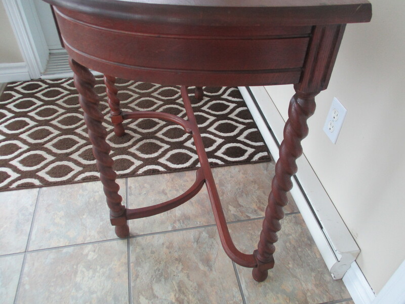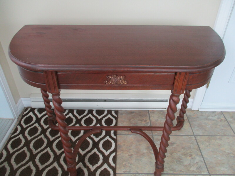 Très jolie table de style Jaqcobin avec un tiroir . Vers 1930. 39po1/2 X 18 X 30 po de hauteur