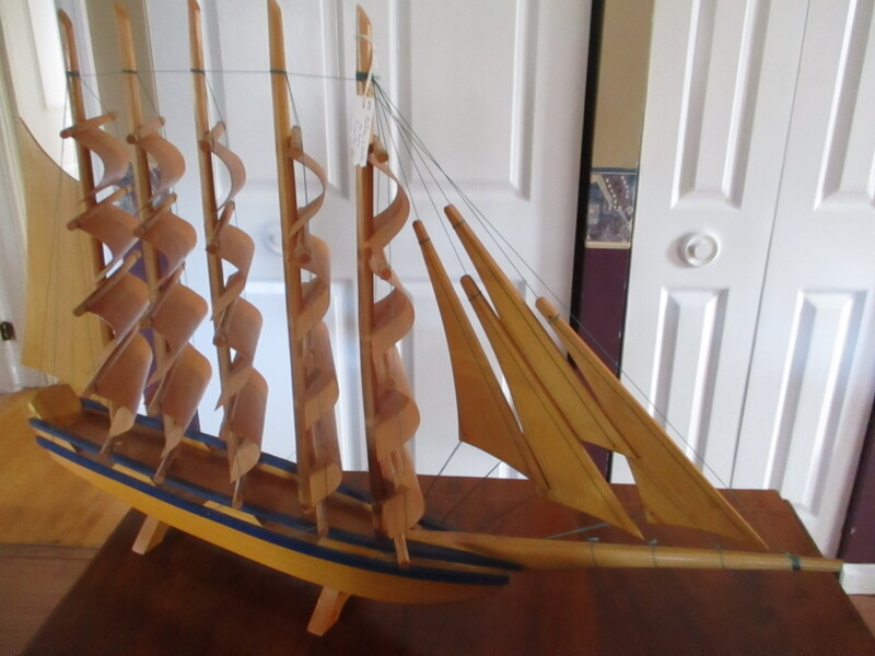 Bateau a voile en bois, 5 mats. Parfaite cpondition. 3 pi de largeur par 2 pi de hauteur