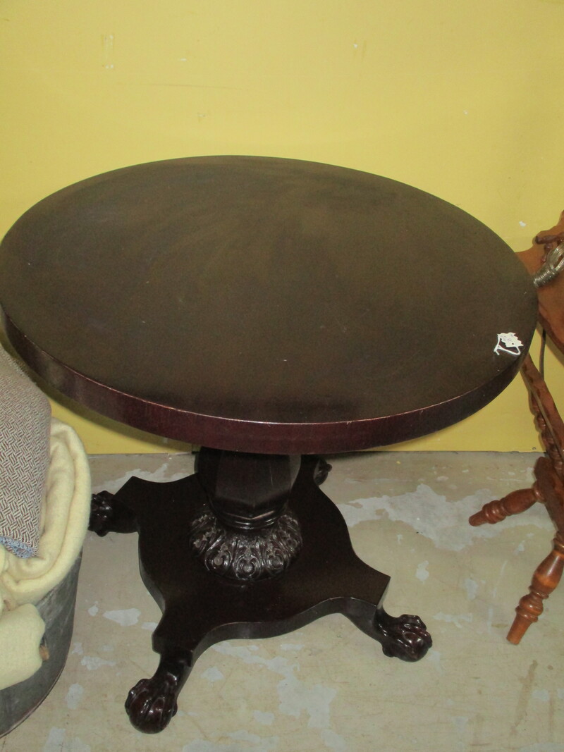 Table d'appoint en noyer de style Chippendale avec pattes d'aigle. 28 po de diamètre par 28 po de hauteur