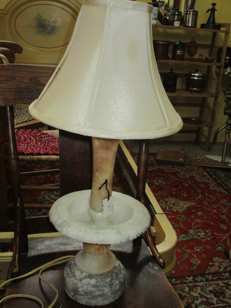 Lampe en marbre avec abreuvoir ( manque les oiseaux) 24 po de hauteur