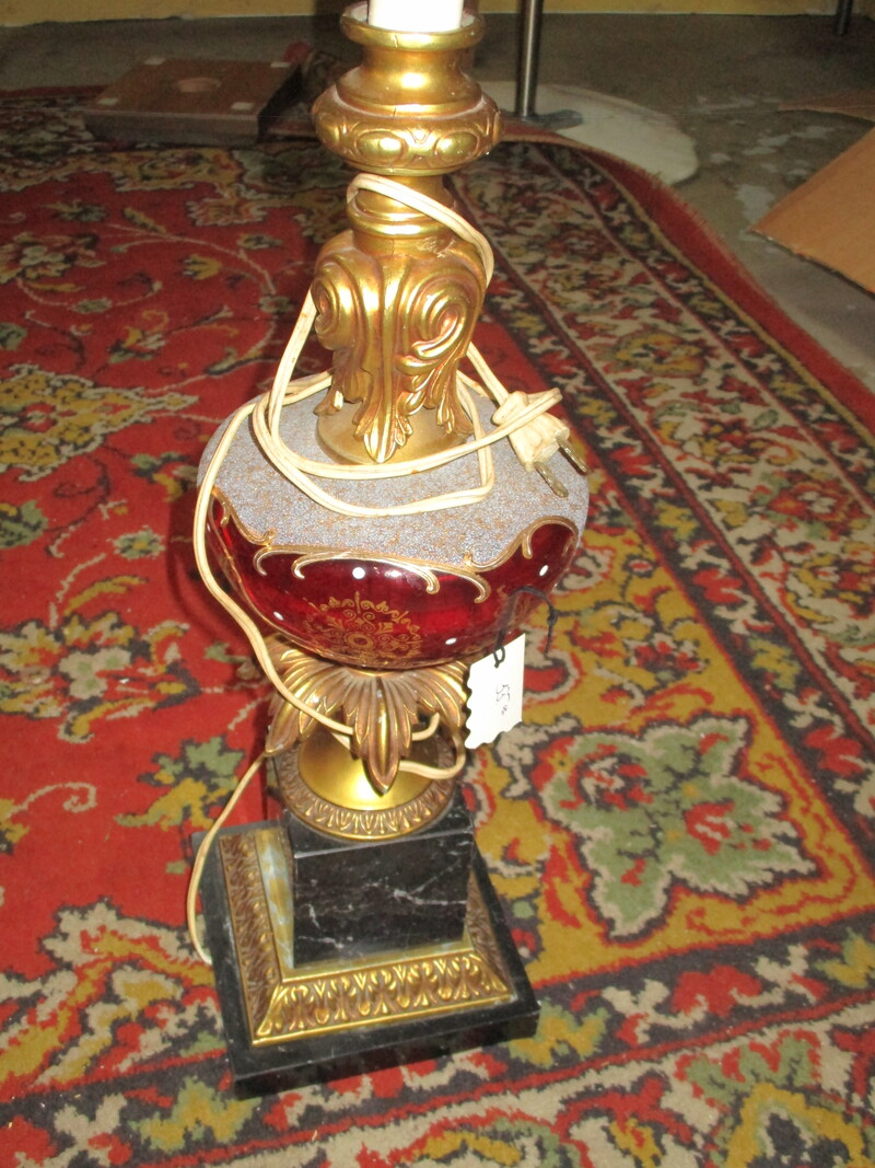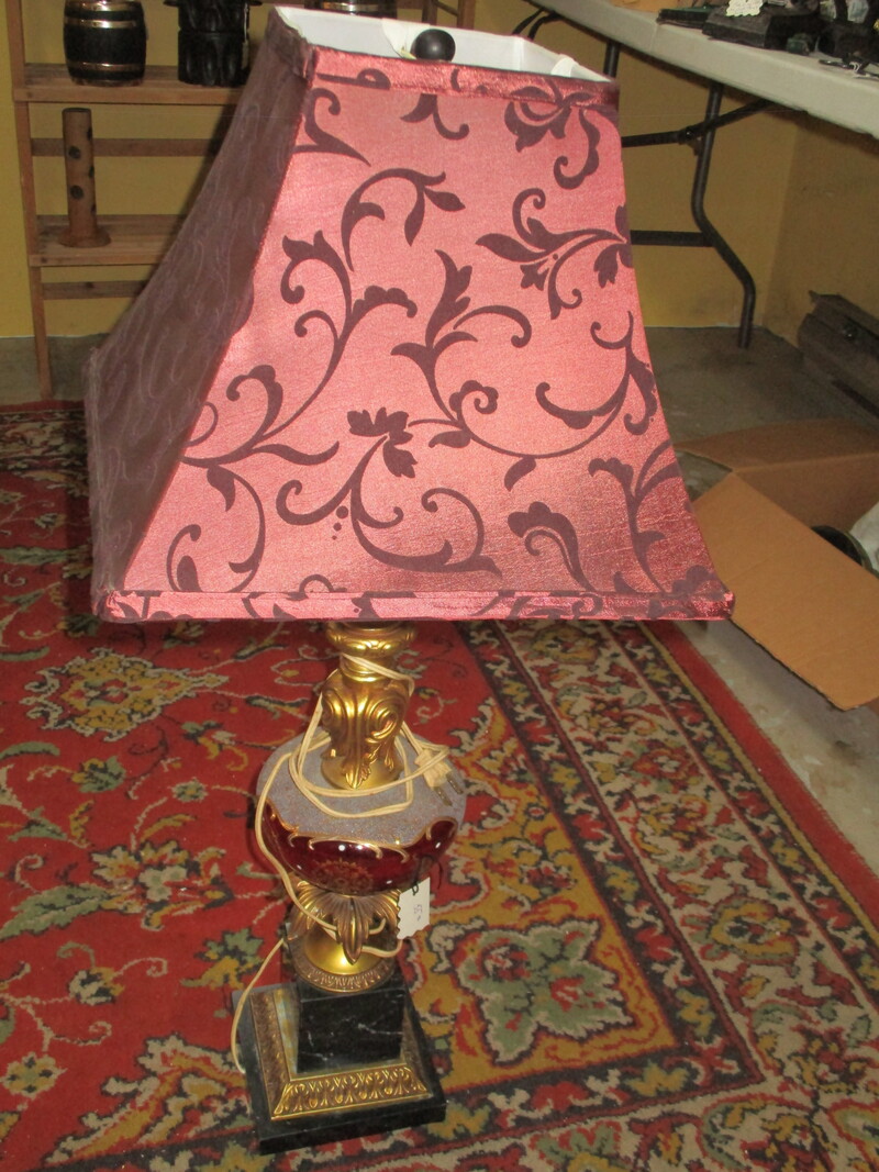Lampe avec base en marbre noir et verre ruby 32 po de hauteur