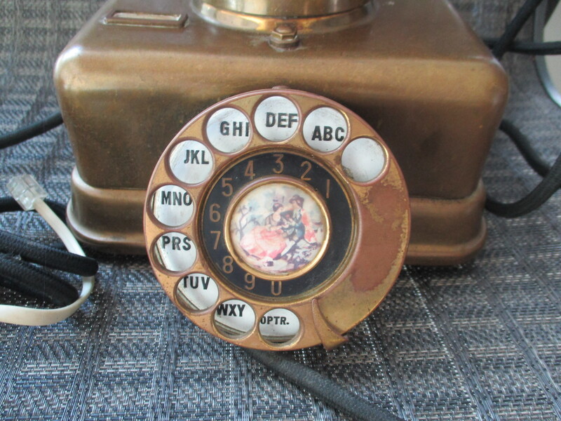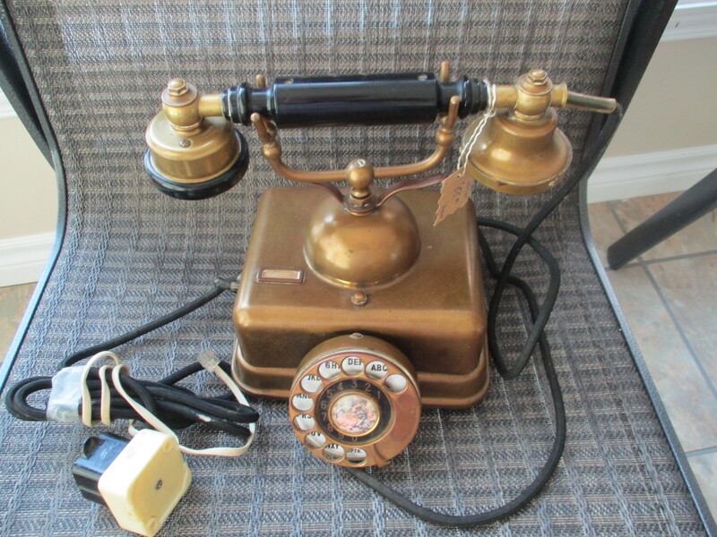 Original téléphone en laiton vintage qui peut s'adapter a une ligne fixe conventionnelle 9.5X 7 X 8 po de hauteur