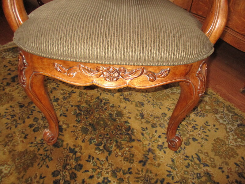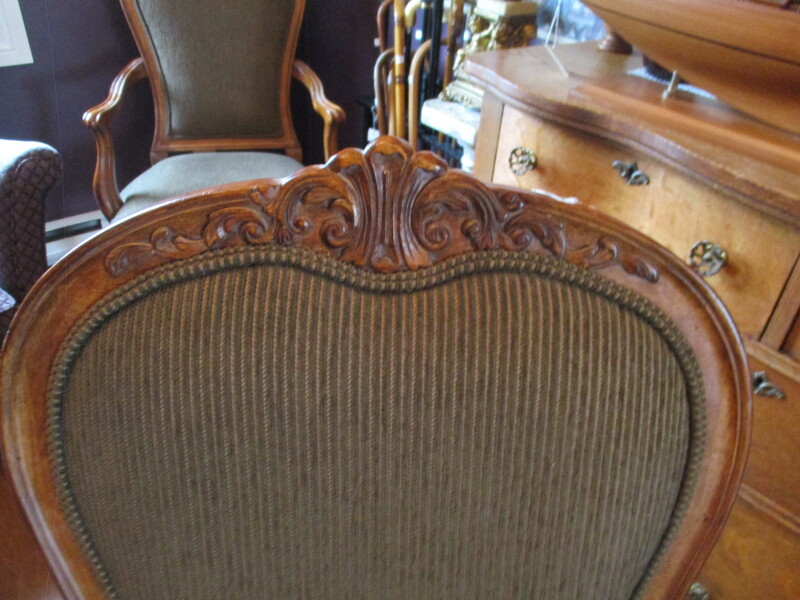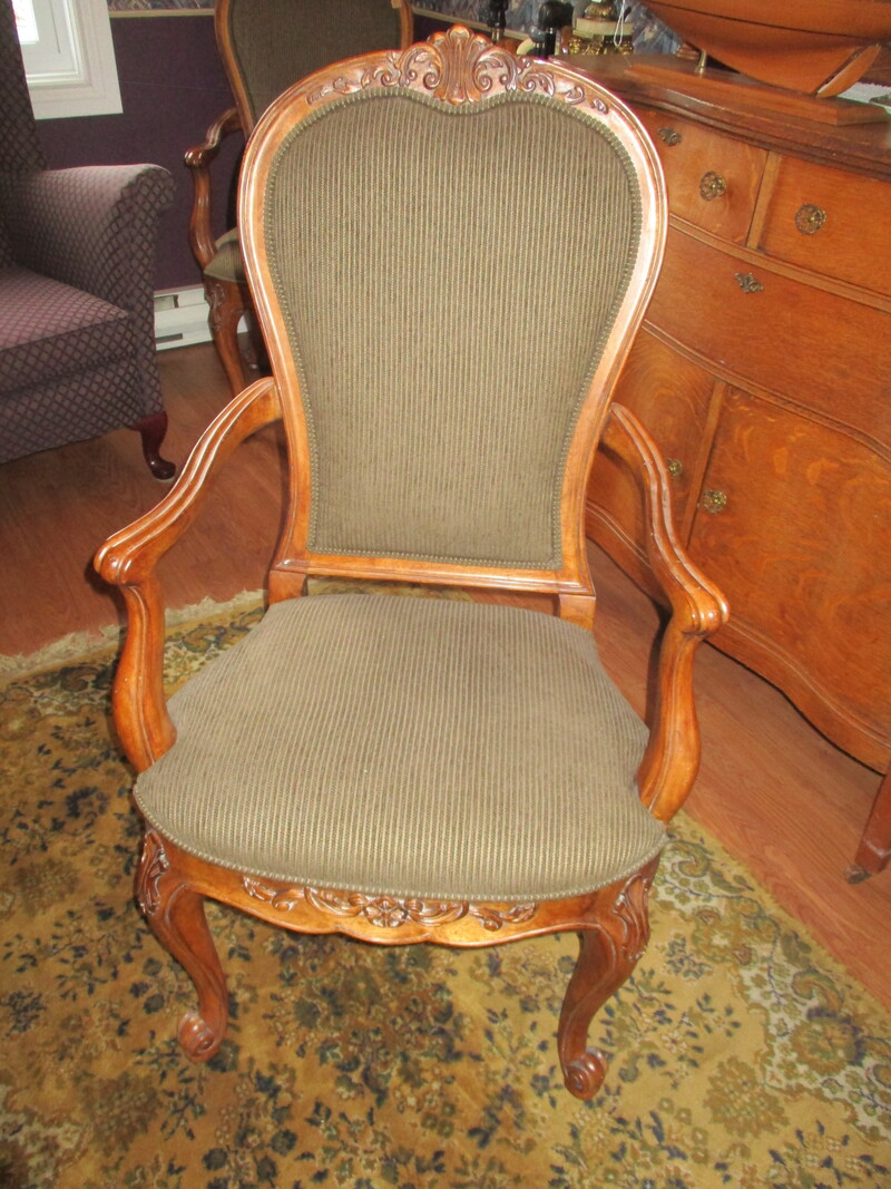 Fauteuil de style Louis XV acheté a l'époque chez N.W. Décor de Sherbrooke, sculpté au haut du dossier et au bas du siège. Les 4 pattes sont galbées. En très bonne condition