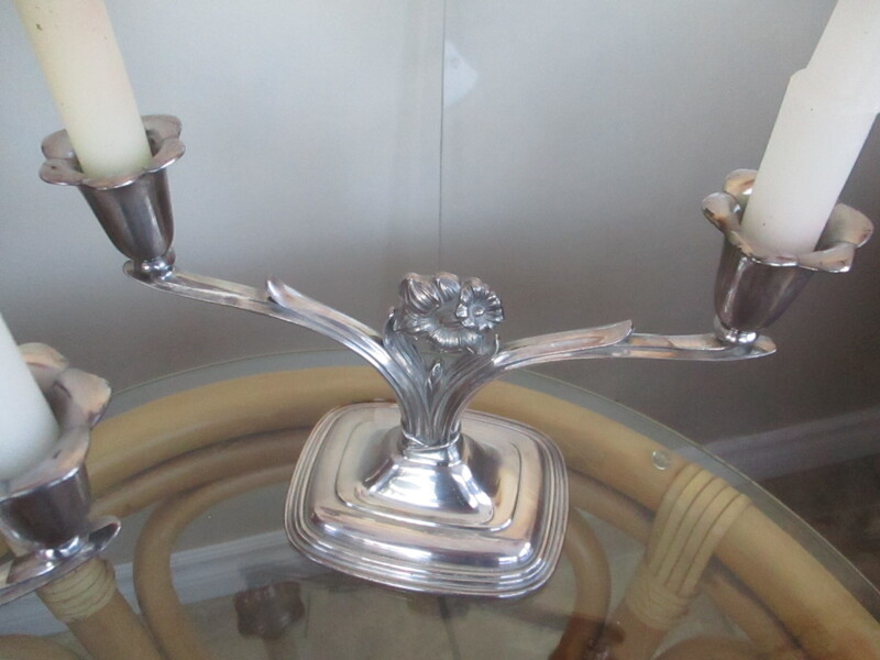 Paire de chandeliers art-déco de Roger Bras, motif Duffodil, en métal argenté 9 X 6 po 1/2