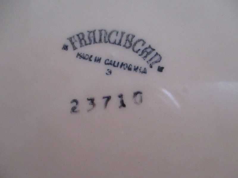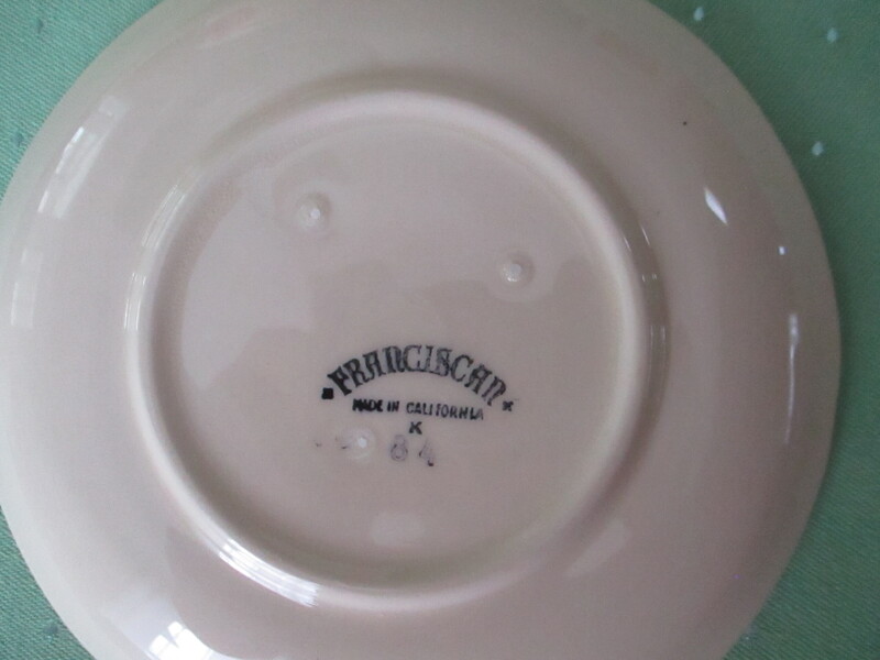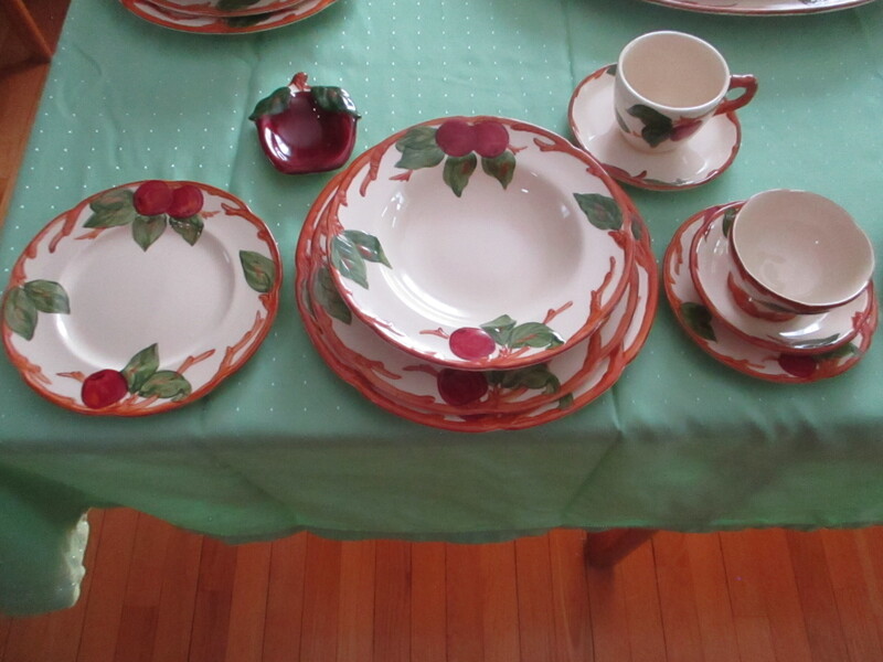 Set de vaisselle de 26 morceaux: 4 couverts de 5 morceaux plus 6 mrcedaux de service. De marque Franciscan Apple fabriqué en Californie au début des années 50. En faience ( céramique) en parfaite condition